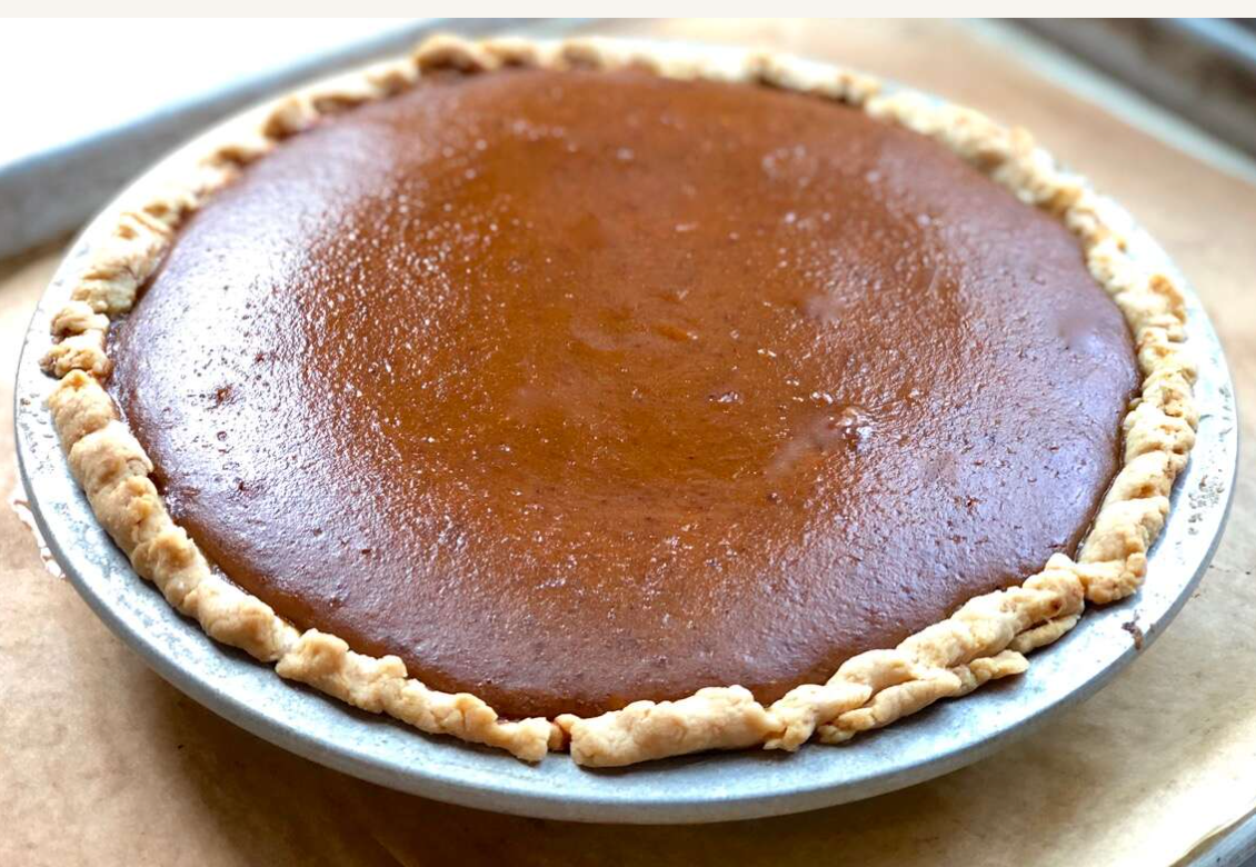 12 in pot pie ready to bake, filled with vegetables, mushrooms and lentils in a flavorful gravy in a buttery pie crust, green salad with homemade lemony dressing, cranberry sauce and pumpkin pie.